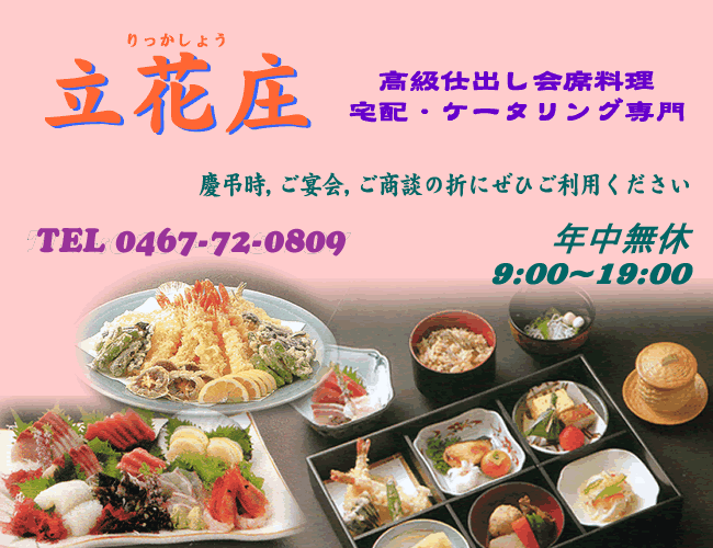 ご予約は立花庄までお電話ください[0467−72−0809]